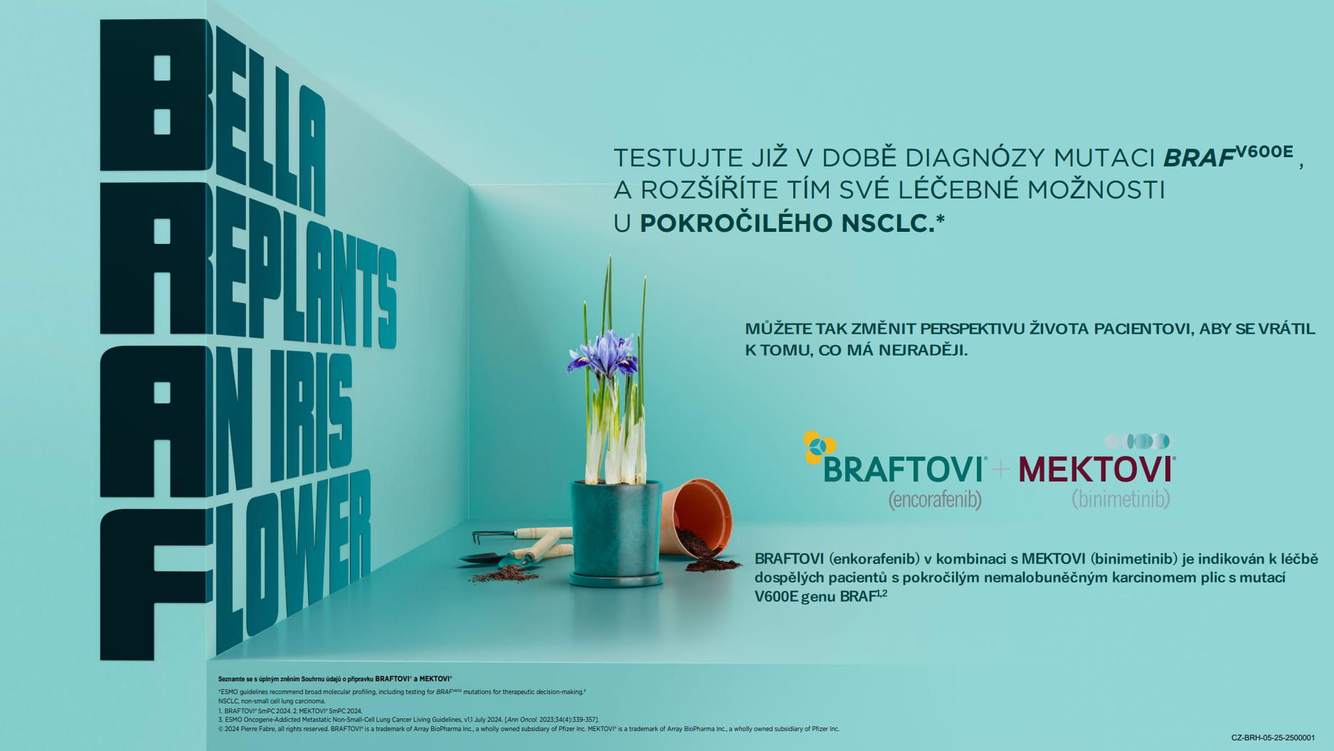 Léčebná kombinace BRAFTOVI® (enkorafenib) a MEKTOVI® (binimetinib) je indikována pro dospělé pacienty s pokročilým NSCLC s mutací BRAFV600E. Tato terapie navazuje na úspěchy v léčbě melanomu a kolorektálního karcinomu a přináší naději i pacientům s tímto typem plicní rakoviny. Časná identifikace genetických mutací tak otevírá cestu k personalizované léčbě a významně zvyšuje šance na zlepšení kvality života.