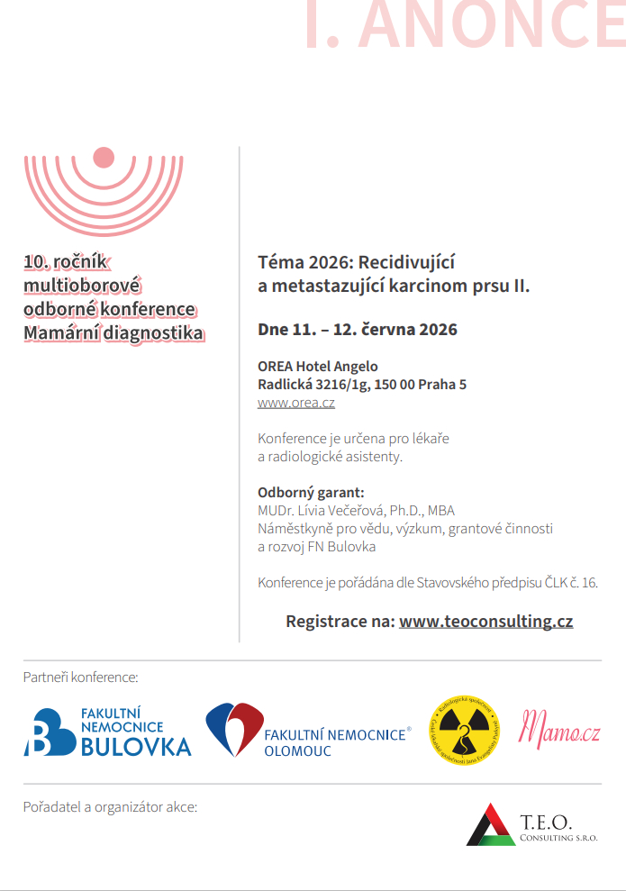 Téma 2026: Recidivující a metastazující karcinom prsu II. Dne 11. – 12. června 2026 OREA Hotel Angelo v Praze.