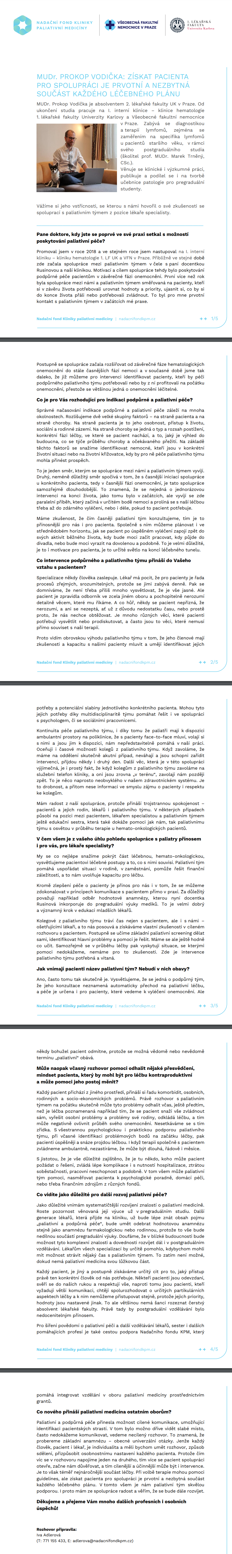 O spolupráci paliativního týmu a 1. interní kliniky 1.LF UK a VFN hovoří dr. Prokop Vodička, z I. interní kliniky – hematologie VFN v Praze. Přečtěte si zajímavý rozhovor, který přináší pohled na paliativní péči od lékaře – nepaliatra.