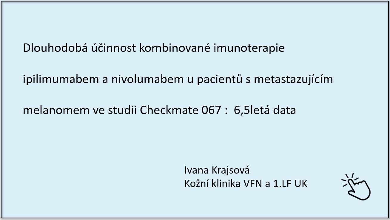 Přinášíme Vám dvě přednášky z konference Best of Oncology, která proběhla začátkem prosince 2021. První z nich se věnuje dlouhodobé účinnosti kombinované imunoterapie ipilimumabem a nivolumabem u pacientů s metastazujícím melanomem ve studii CheckMate 067. Druhá přednáška je zaměřena na problematiku terapie karcinomu močového měchýře. Seznamte se s tím, jak imunoterapie rozšiřuje možnosti v léčbě uroteliálního karcinomu, včetně neoadjuvantní imunoterapie. Přečtěte si detaily.