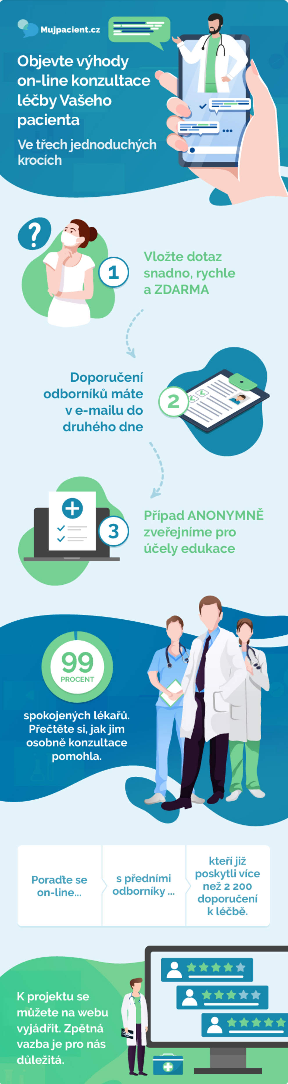 MUJPACIENT.cz přináší prostřednictvím služby SECOND OPINION pro lékaře možnost on-line konzultace diagnostiky a léčby pacientů s onkologickým onemocněním z reálné klinické praxe. K dalšímu postupu léčby Vašeho pacienta se vyjádří přední odborníci z oboru. Odpověď máte obvykle následující den. Je to snadné, stačí jen vložit případ.