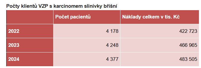 Všeobecná zdravotní pojišťovna za léčbu rakoviny slinivky břišní vloni zaplatila přes 484 milionů korun, což je za tři roky nárůst zhruba o 14 %.