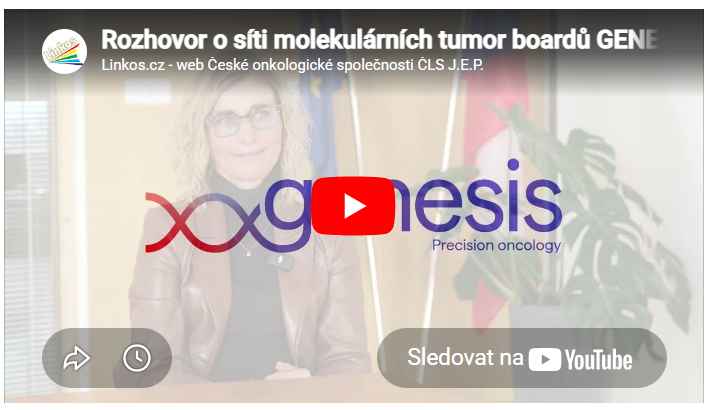 Rozhovor o síti molekulárních tumor boardů GENESIS v České republice V tomto videu doc. MUDr. Radka Lordick Obermannová, Ph.D., detailně přibližuje problematiku molekulárního testování. Poskytuje vhled do toho, jakým způsobem se tyto postupy staly zcela nedílnou součástí přístupů v moderní onkologii.