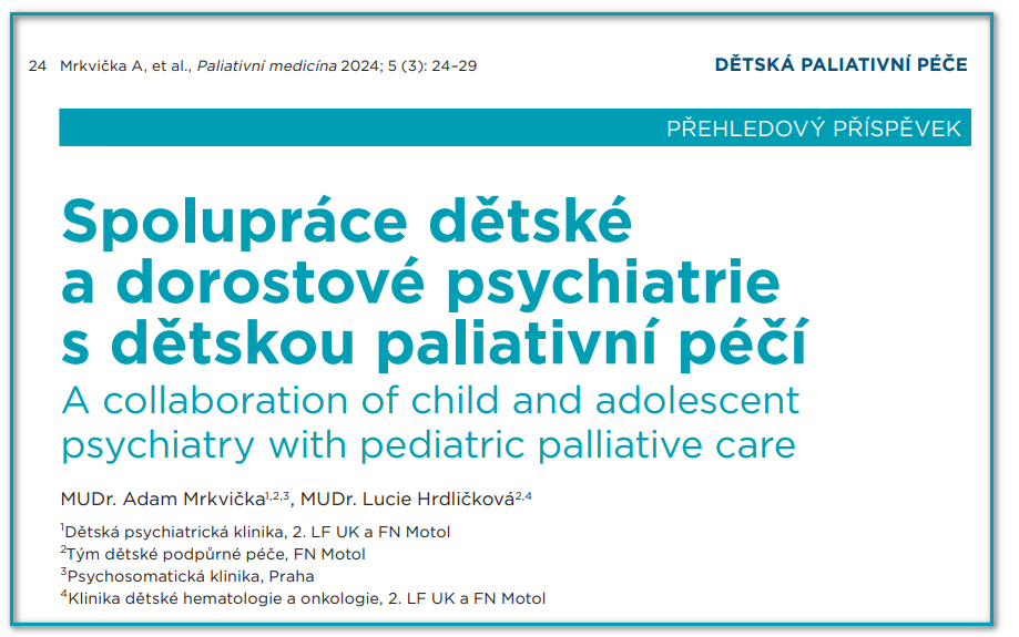 Článek mapuje možné propojení a mezioborovou spolupráci mezi dětskou paliativní péčí a dětskou a dorostovou psychiatrií. Vychází z publikovaných prací zabývajících se tímto tématem a popisuje možné benefity pro pacienty a jejich rodiny.