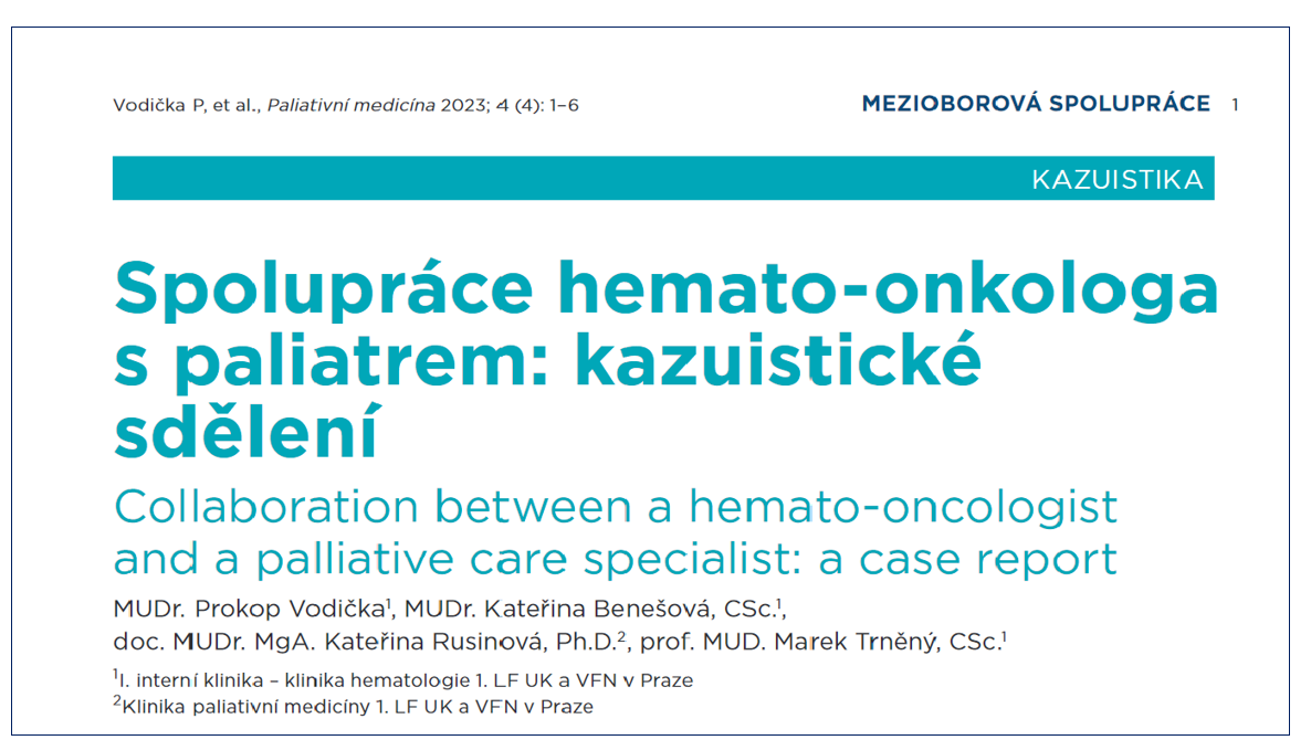 Článek přináší kazuistiku mladé pacientky s terapeuticky refrakterním difúzním velkobuněčným B-lymfomem s důrazem na spolupráci mezi hemato-onkology a lékaři paliativního týmu ve Všeobecné fakultní nemocnici (VFN) v Praze.