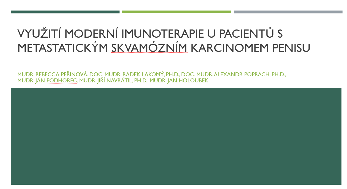 Publikovaná prezentace popisuje aktuální možnosti terapie metastatického skvamózního karcinomu penisu, vzácného onemocnění, které se vyznačuje v pokročilých stadiích špatnou prognózou. Seznamte se s incidencí, rizikovými faktory, klasifikací nebo s tím, jak postupovat u pacientů nevhodných pro léčbu cisplatinou, nebo progredujících při standardní CHT. Součástí prezentace je kazuistika.