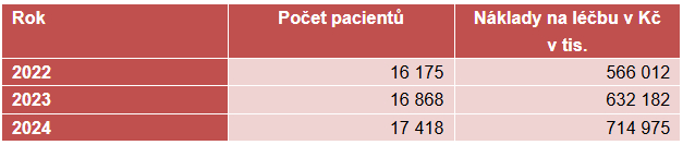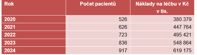Za posledních pět let se počet pacientů léčených cílenou biologickou léčbou a imunoterapií téměř zdvojnásobil a vyšší o 63 % jsou i náklady na léčbu. Konkrétně v loňském roce činily celkové náklady 620 milionů korun, což je 87 % z celkových nákladů VZP na léčbu této zákeřné nemoci.